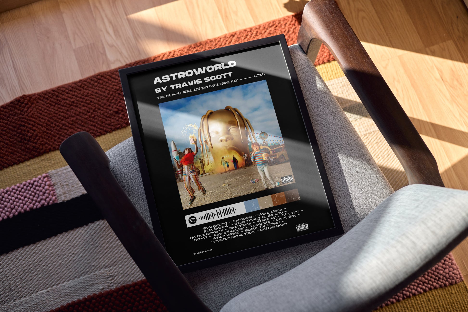 Astroworld va Travis Skott o'rtasidagi dinamik hamkorlikni ushbu tajribali poster bilan nishonlang. Muxlislar va kollektsionerlar uchun mo‘ljallangan, u Travis Skottning uzoqni ko‘rish uslubi bilan uyg‘unlashgan Astroworld tasvirlarining mohiyatini aks ettiradi. Zamonaviy musiqaning eng nufuzli arboblaridan birini sharaflaydigan jasur, badiiy bayonot bilan har qanday makonni yaxshilash uchun juda mos keladi. Bardoshli va ko‘zga ko‘rinadigan bu afisha yuqori sifatli musiqa madaniyatini izlayotgan ishqibozlar uchun bo‘lishi shart.