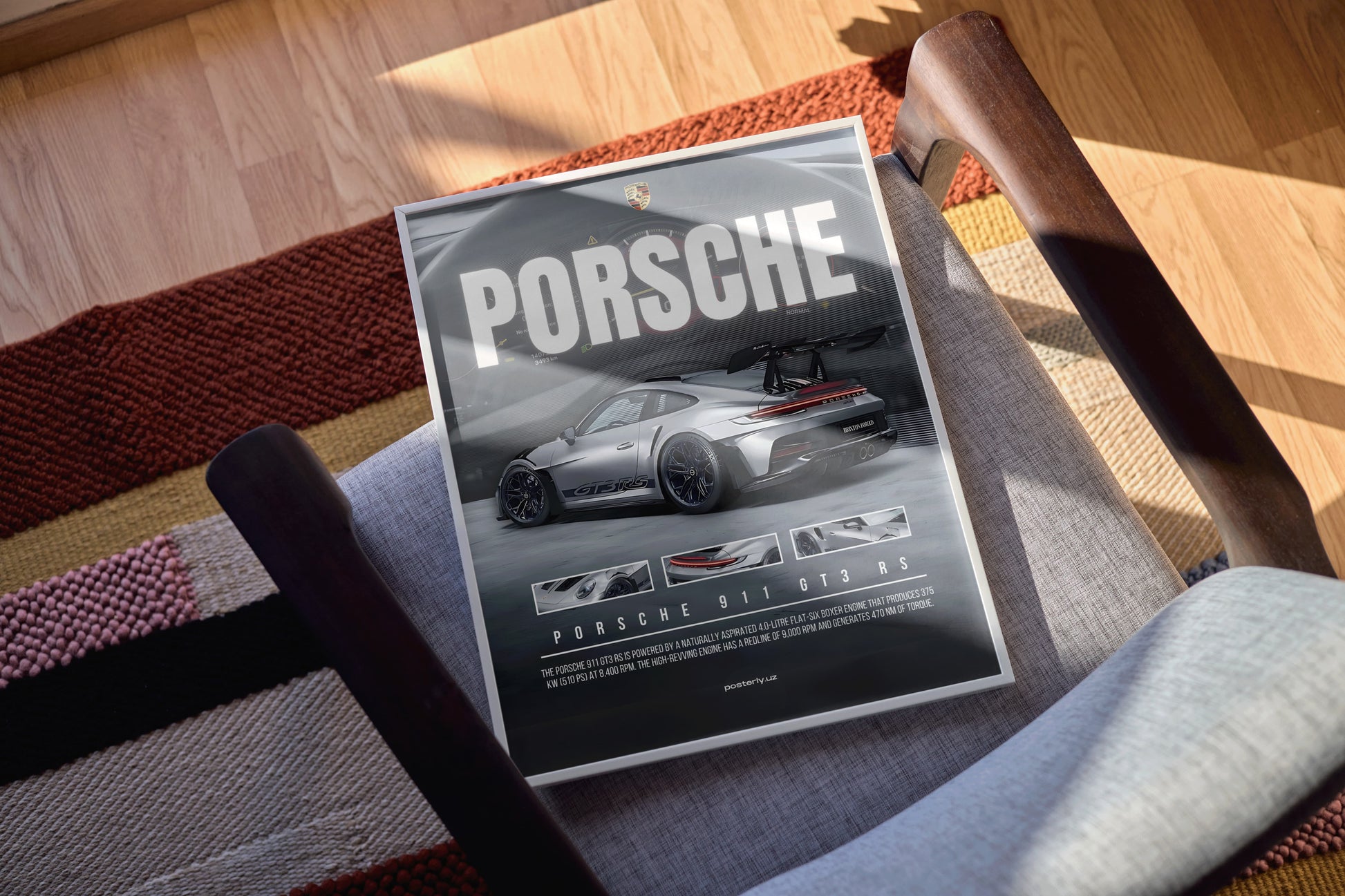 Ushbu Porsche 911 GT3 RS posteri bilan o'z makoningizni yanada boyiting, bu trekka yo'naltirilgan muhandislik va poyga merosining eng yuqori ifodasiga ajoyib vizual hurmatdir. Ushbu san'at asari afsonaviy sport avtomobilining agressiv aerodinamik to'plami, o'ziga xos orqa qanoti va zamonaviy yuqori samarali motorni belgilaydigan maqsadli dizayn tilini aks ettiradi. Jiddiy avtomobil kollektorlari va Porsche ixlosmandlari uchun yaratilgan plakat GT3 RS ning ajoyib boshqaruv dinamikasi, tabiiy ravishda ishlaydigan dvigateli va aniqlikka sodiqligini ulug'laydi. Garajda, ofisda yoki kollektor vitrinasida bo'lsin, o'zingizning makoningizga eng mos keladiganini topish uchun A1, A2, A3 yoki A4 o'lchamlaridan birini tanlang. Har bir format ushbu afsonaviy mashinaning poyga nasl-nasabini ulug'laydigan ajoyib bosma aniqlik va ranglarning aniqligini ta'minlaydi.