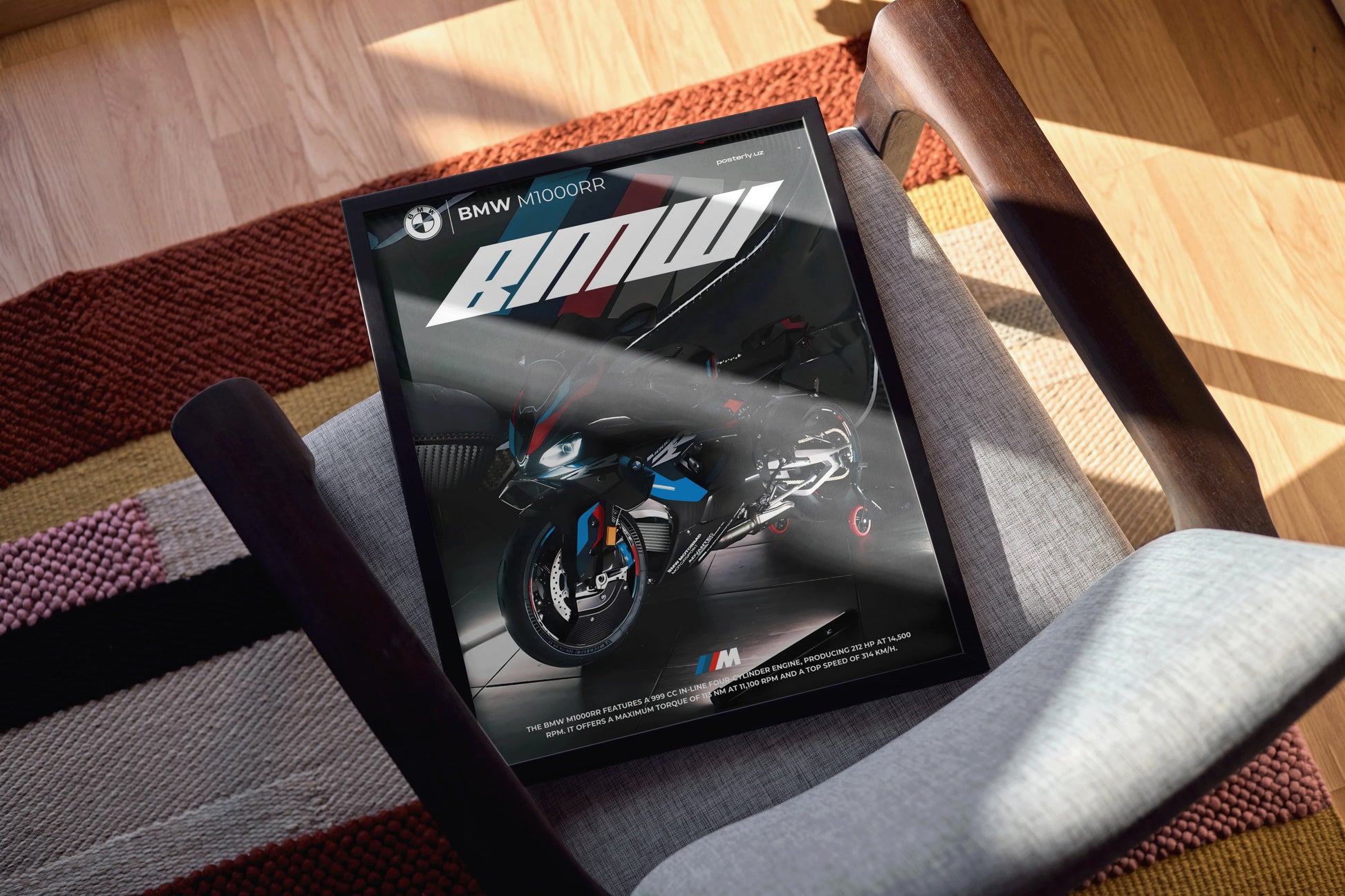 Ushbu BMW M1000RR plakati bilan mototsikl muhandisligining cho'qqisini nishonlang. BMW’ning yuqori unumli supervelosipedining zamonaviy dizayni va dinamik mavjudligini namoyish etuvchi ushbu afishada aniqlik va quvvatni qadrlaydigan ishqibozlar uchun juda mos keladi. Garajlar, ofislar yoki yashash joylarida namoyish qilish uchun ideal bo'lib, u ilg'or texnologiyalar va poyga merosining mohiyatini ajoyib vizual formatda aks ettiradi.