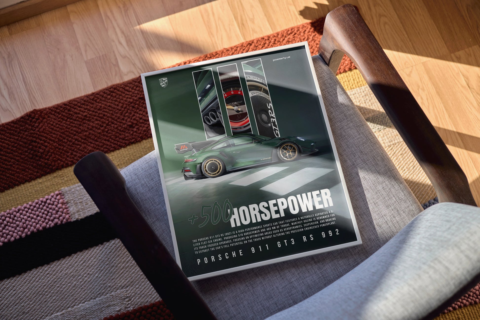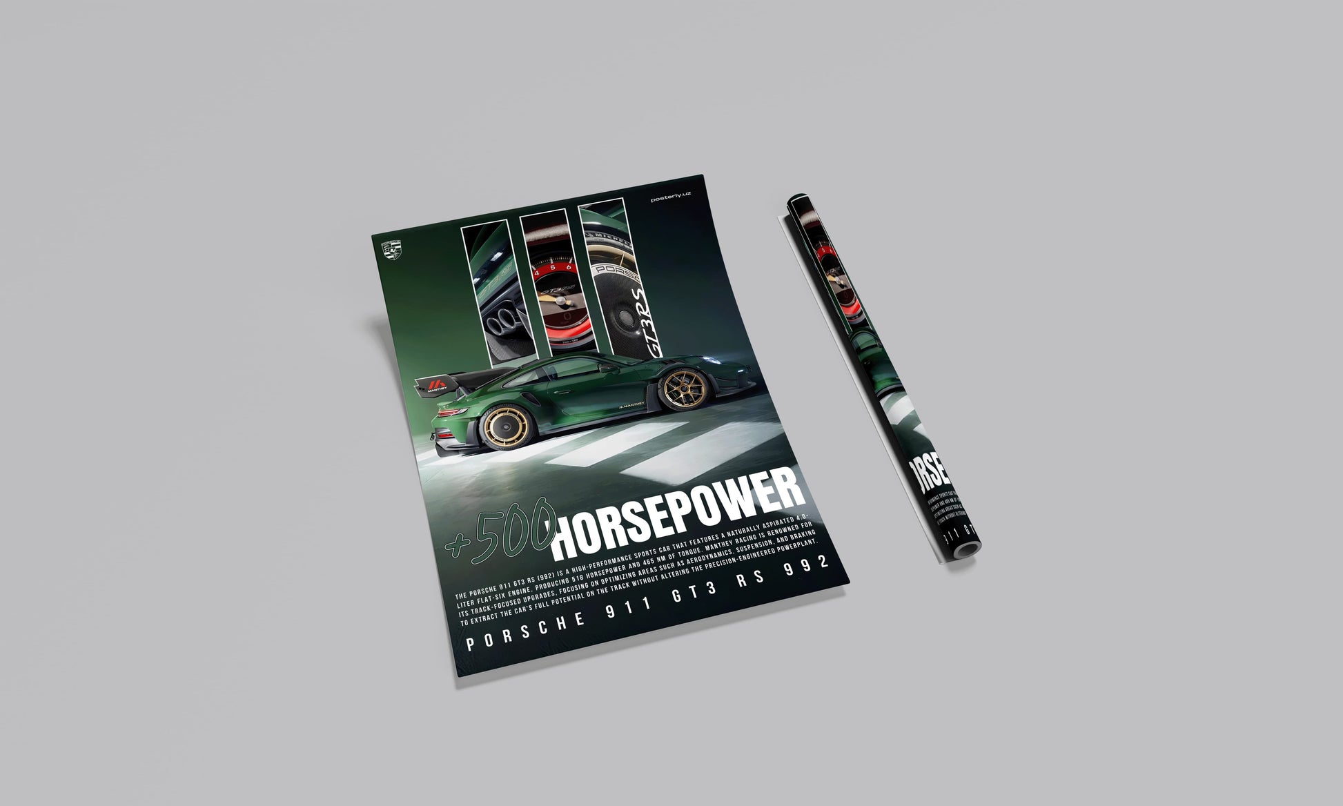 Ushbu Porsche 911 GT3 RS 992 Manthey Kit 2.0 posteri bilan Porsche avtomobilining eng yuqori cho'qqisini namoyish eting, u Shtutgartning afsonaviy sport avtomobilining eng ekstremal versiyasini aks ettiradi. Ushbu san'at asari avtomobilning poygadan olingan aerodinamik yaxshilanishlarini, agressiv kuzov modifikatsiyalarini va trekka yo'naltirilgan muhandislikni ta'kidlaydi, bu esa ishlashni musobaqa darajasiga ko'taradi. Porschening fidoyi muxlislari va avtosport kollektorlari uchun ideal bo'lgan plakat Manthey Kitning o'zgaruvchan yangilanishlarini va aylana bo'ylab mukammallikka tinimsiz intilishini nishonlaydi. Poyga mavzusidagi garajda, avtomobil galereyasida yoki shaxsiy kolleksiyada bo'ladimi, displeyingizni sozlash uchun A1, A2, A3 yoki A4 o'lchamlaridan tanlang. Har bir format ushbu eng zo'r trek mashinasining har bir detalini aks ettiruvchi sof bosma sifati va yorqin ranglarni taqdim etadi.