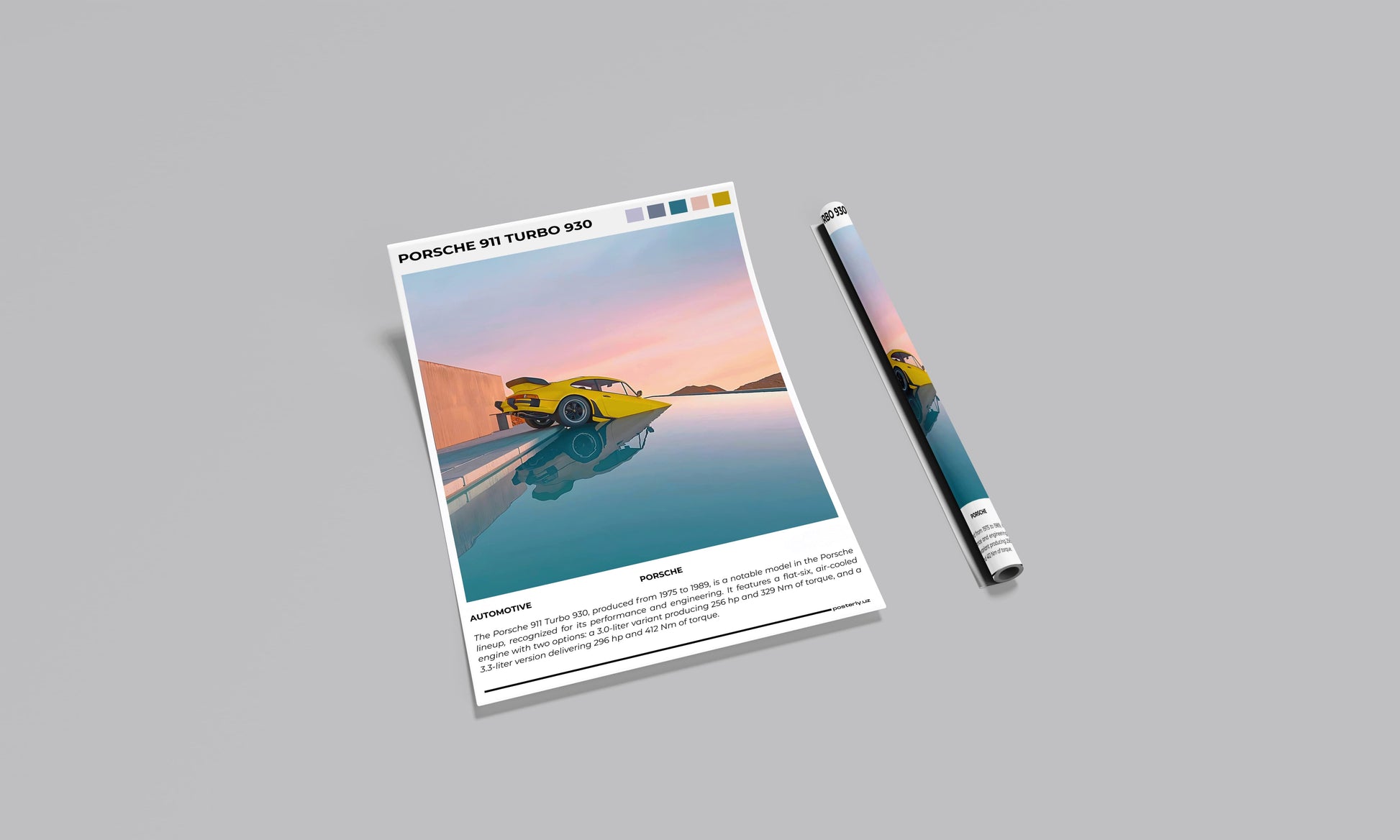 Porsche 911 Turbo 930 posteri avtomobil tarixidagi eng nufuzli samaradorlik mashinalaridan biriga ishonchli vizual hurmat bajo keltiradi. Ushbu puxta ishlangan sanʼat asari afsonaviy 930 ning oʻziga xos silueti va muhandislik mahoratini nafis aniqlik bilan namoyish etadi. Yilni A4 dan tortib keng A1 formatlarigacha boʻlgan koʻp qirrali oʻlchamlarda taqdim etilgan plakat shaxsiy kolleksiyalardan tortib professional avtomobil galereyalarigacha boʻlgan turli xil displey afzalliklarini taqdim etadi. Har bir format ajoyib tasvir aniqligi va vizual taʼsirni saqlab qoladi, bu esa ixlosmandlarga oʻzlarining ideal taqdimot shkalasini tanlash imkonini beradi. Ushbu klassik nashr 911 Turbo 930 ning inqilobiy turbochargali merosi va abadiy dizayn tilini ulugʻlaydi, nozik kollektorlar va avtomobil ixlosmandlari uchun muzey sifatidagi sanʼatni taqdim etadi.