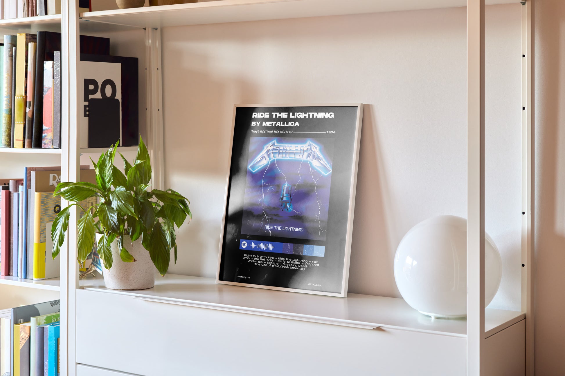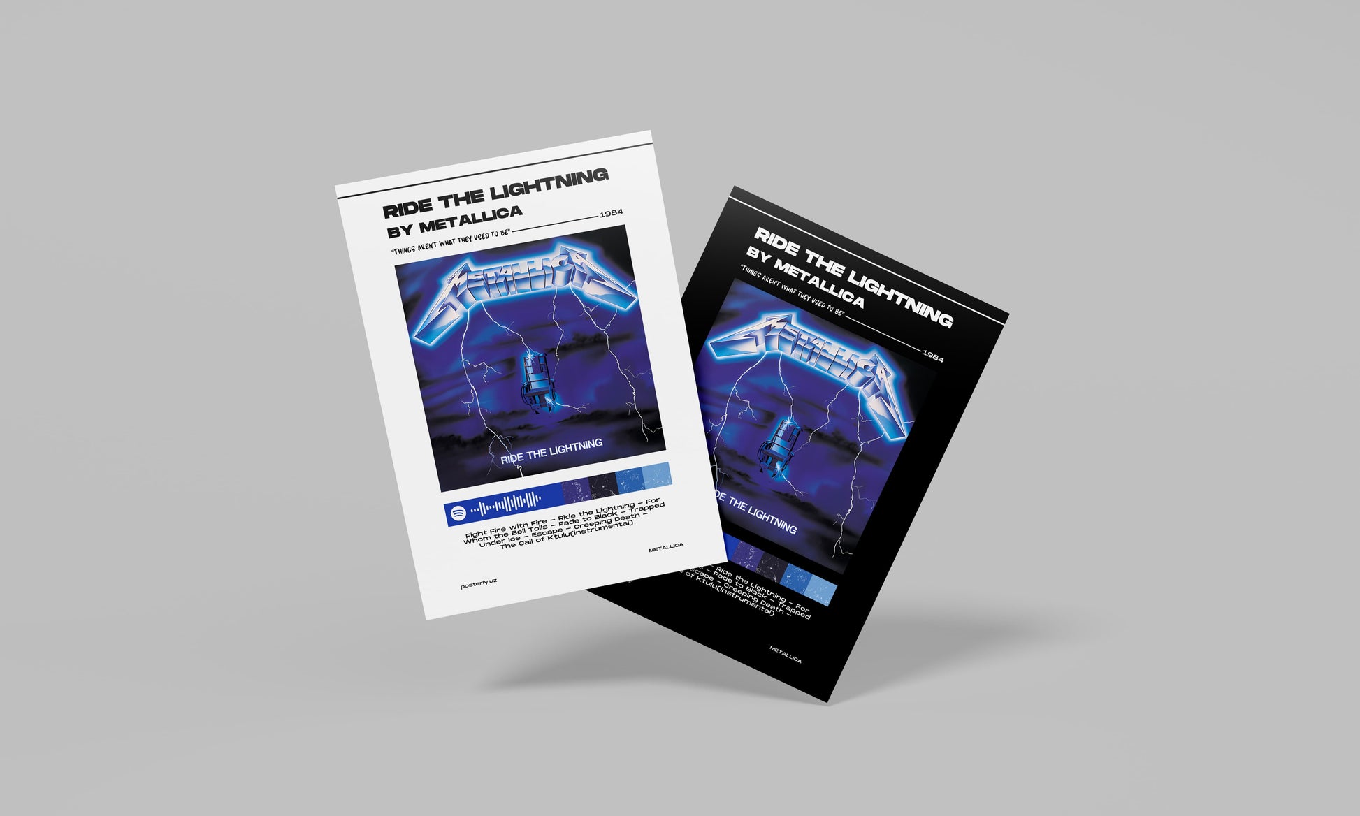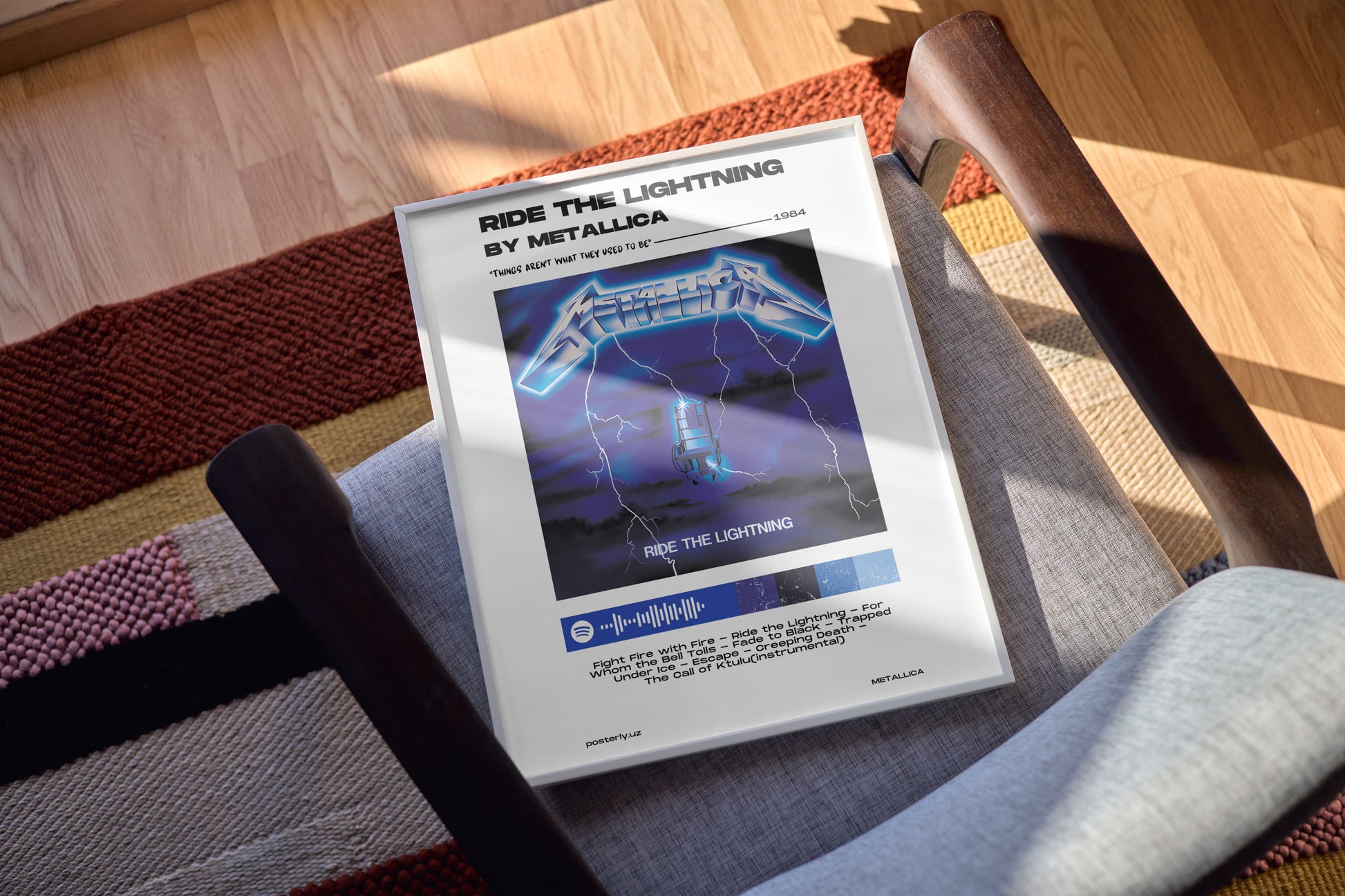 "Ride The Lightning x Metallica" posteri bilan Metallicaga bo'lgan ishtiyoqingizni namoyish eting. Metallica-ning afsonaviy albomidan ilhomlangan ajoyib san'at asarlarini o'z ichiga olgan ushbu afisha har qanday fidoyi muxlislar uchun bo'lishi kerak. Yuqori sifatli materiallarga aniqlik bilan bosilgan, vaqt sinoviga bardosh beradigan aniq tasvirlar va jonli ranglarni ta'minlaydi. Musiqa makoningiz yoki kollektsiyangizni yaxshilash uchun juda mos keladi, u tarixdagi eng nufuzli metall guruhlardan birining energiyasi va merosini qamrab oladi.