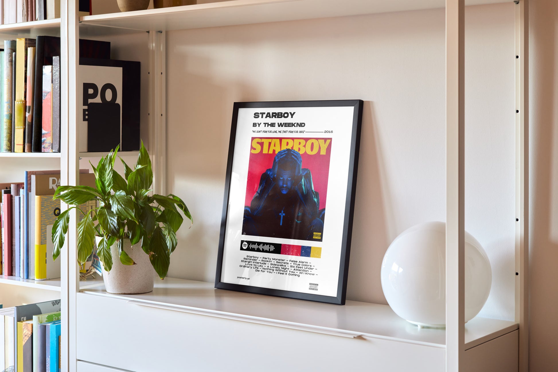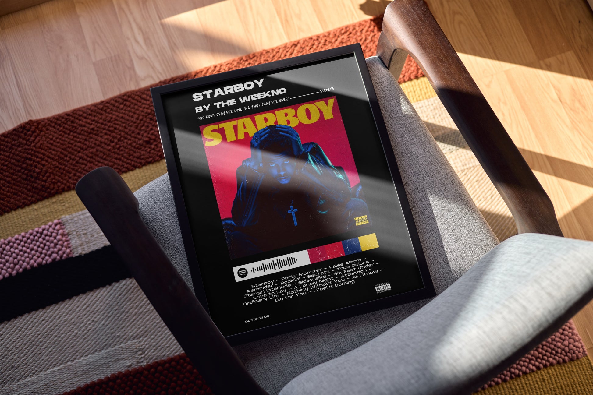 Ushbu tajribali posterda The Weeknd-ning mashhur Starboy erasini nishonlang. Albomning mashhur san'at asari bilan u karyerasining ushbu bosqichini belgilaydigan zamonaviy va futuristik estetikani aks ettiradi. Yuqori sifatli materiallarda chop etilgan afisha ajoyib detallar va chidamlilikni ta'minlaydi, bu uni muxlislar va ishqibozlar uchun ajoyib to'plamga aylantiradi. Zamonaviy musiqa va tasviriy san'atga bag'ishlangan har qanday maydonda namoyish qilish uchun ideal.