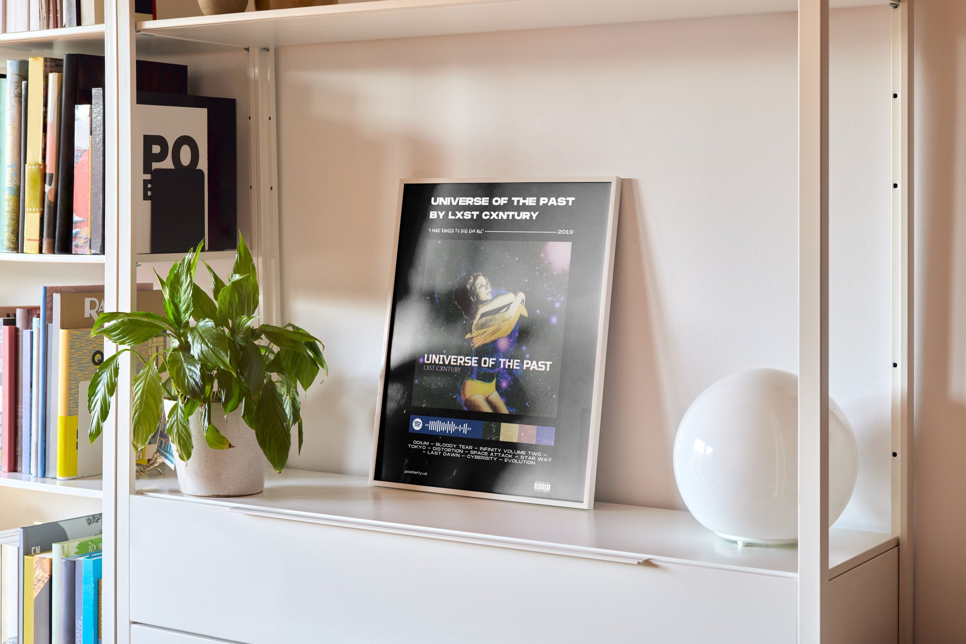 O'zingizni LXST CXNTURYning "Universe of The Past" afishasining o'ziga xos muhitiga sho'ng'ing. Rassomning nostalgik va futuristik elementlarning uyg'unligini o'zida mujassamlash uchun mo'ljallangan ushbu yuqori sifatli bosma aniq detallar va uzoq chidamlilikni ta'minlaydi. Innovatsion vizual hikoyalar va zamonaviy musiqa madaniyatini qadrlaydigan kollektorlar va muxlislar uchun juda mos keladi, u har qanday makonga murakkab va hayajonli bir hissiyot qo'shadi.