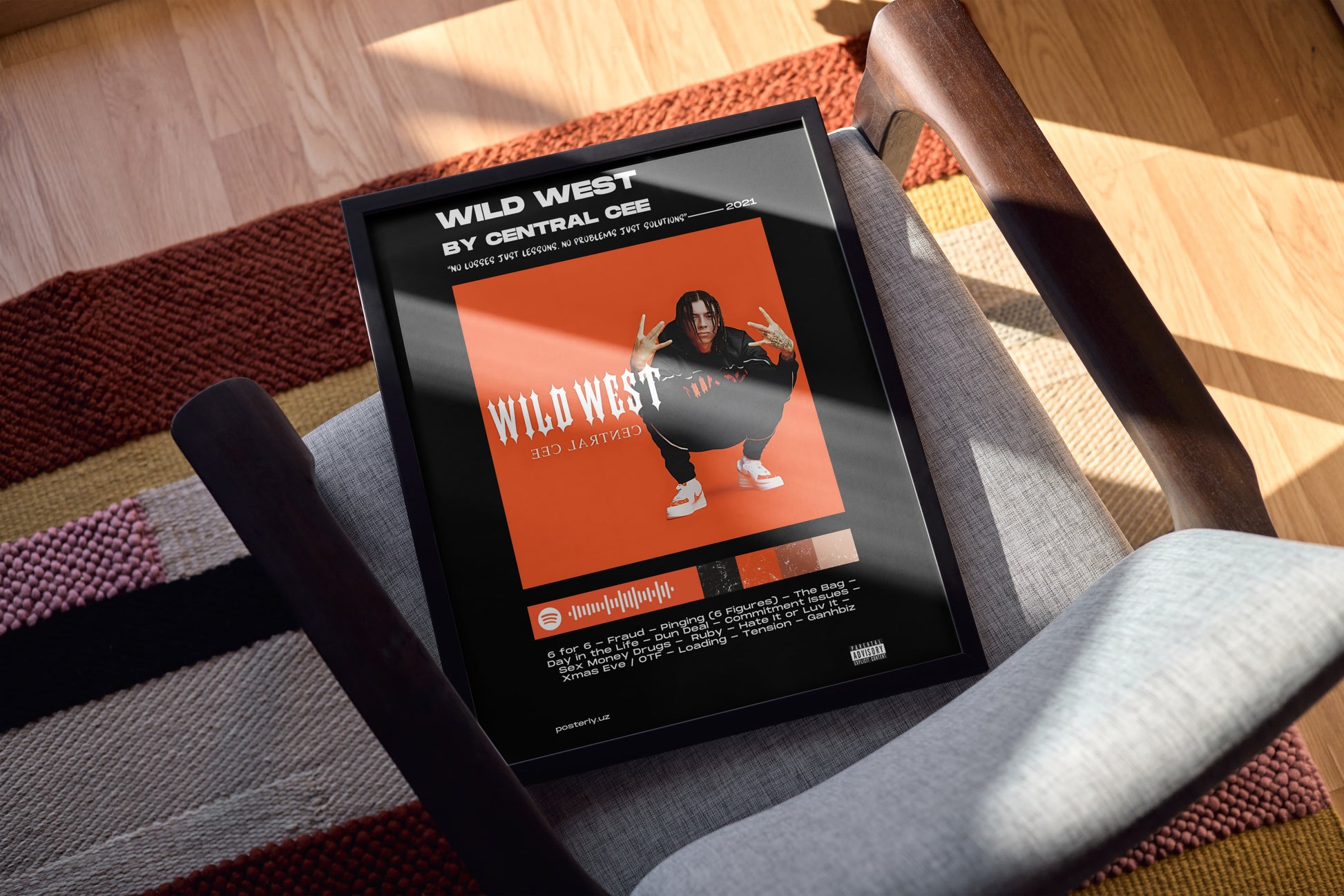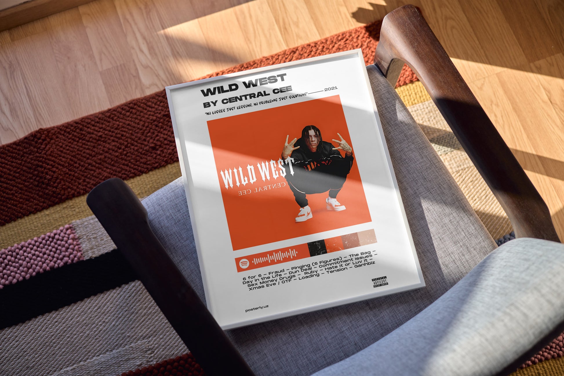 # Wild West x Central Cee Poster Ushbu ajoyib hamkorlik posteri bilan zamonaviy hip-hop madaniyatining mohiyatini aks ettiring. Ko'cha estetikasini badiiy nafislik bilan birlashtirgan jasur tipografiya va dinamik tasvirlarga ega ushbu asar musiqa ixlosmandlari va kollektorlar uchun ham ifoda bo'lib xizmat qiladi. Dizayn xom energiyani nafis vizual kompozitsiya bilan muvozanatlashtiradi, bu esa uni musiqa va san'at kesishadigan studiyalar, galereyalar yoki shaxsiy makonlar uchun ideal qo'shimcha qiladi. Yuqori sifatli bosma vaqtga bardosh beradigan yorqin ranglar va aniq detallarni ta'minlaydi. Zamonaviy rep madaniyatining haqiqiy ifodasini izlayotgan muxlislar uchun zaruriy narsa.